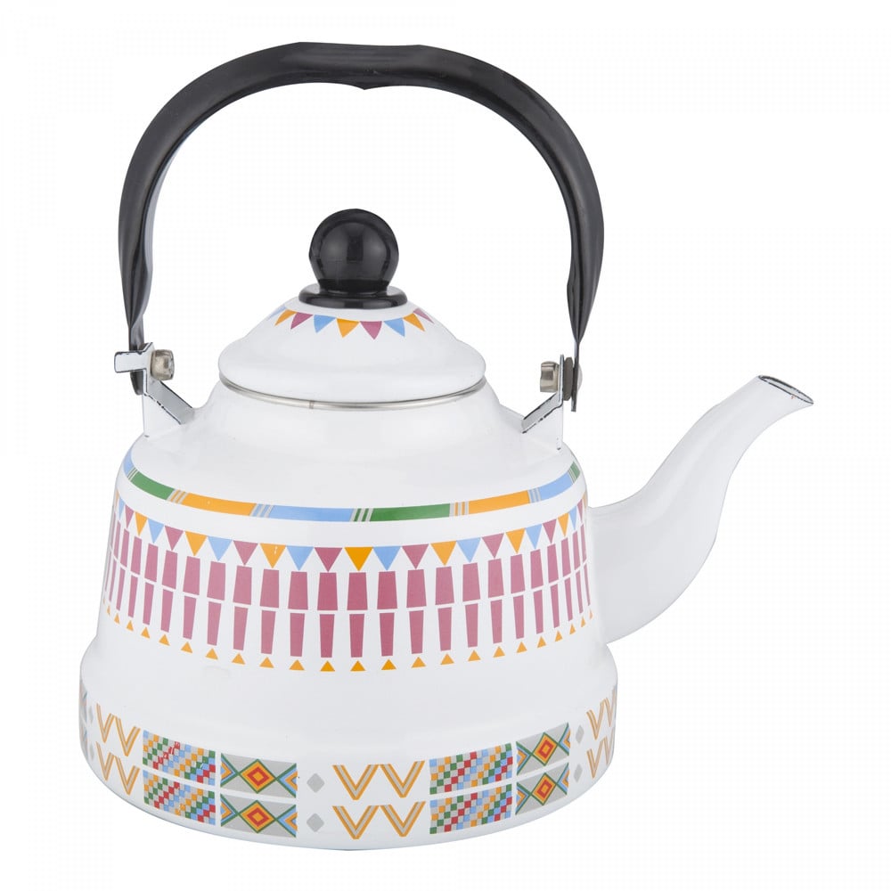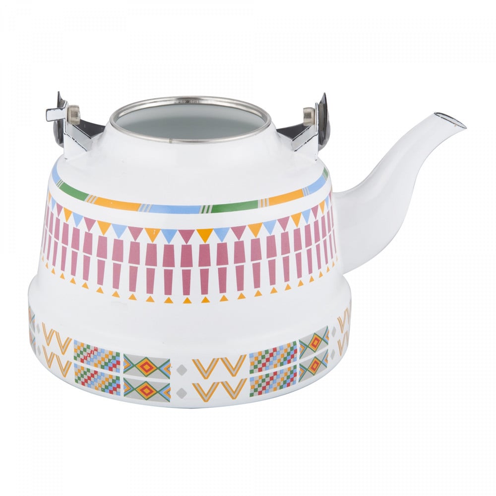 ابريق شاي غضار نقش القط العسيري لون ابيض تصميم تراثي أنيق مطلي ببودرة حرارية سهل الإستخدام والنقل و التنظيف مقاوم لدرجات الحرارة العالية.
