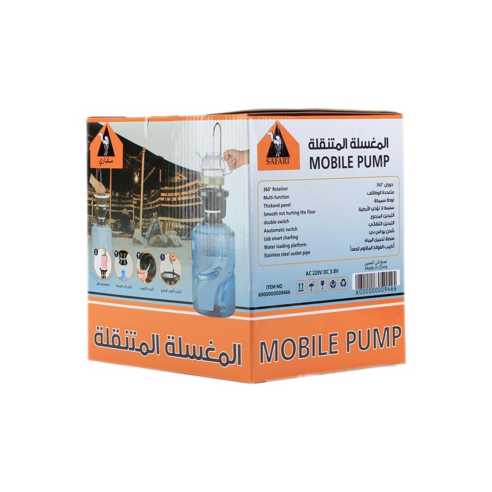 مغسلة الماء المتنقلة "أبو جمل" هي وحدة محمولة لتوفير الماء في الأماكن التي لا تتوفر فيها مصادر مياه ثابتة، مثل التخييم والرحلات البرية والفعاليات الخارجية. تتميز بتصميمها العملي الذي يشمل خزان مياه، ومضخة لضخ المياه، وصنبور. بعض النماذج تأتي مع ميزات إضافية مثل موزع صابون، وحامل مناديل، وعجلات لسهولة الحركة.