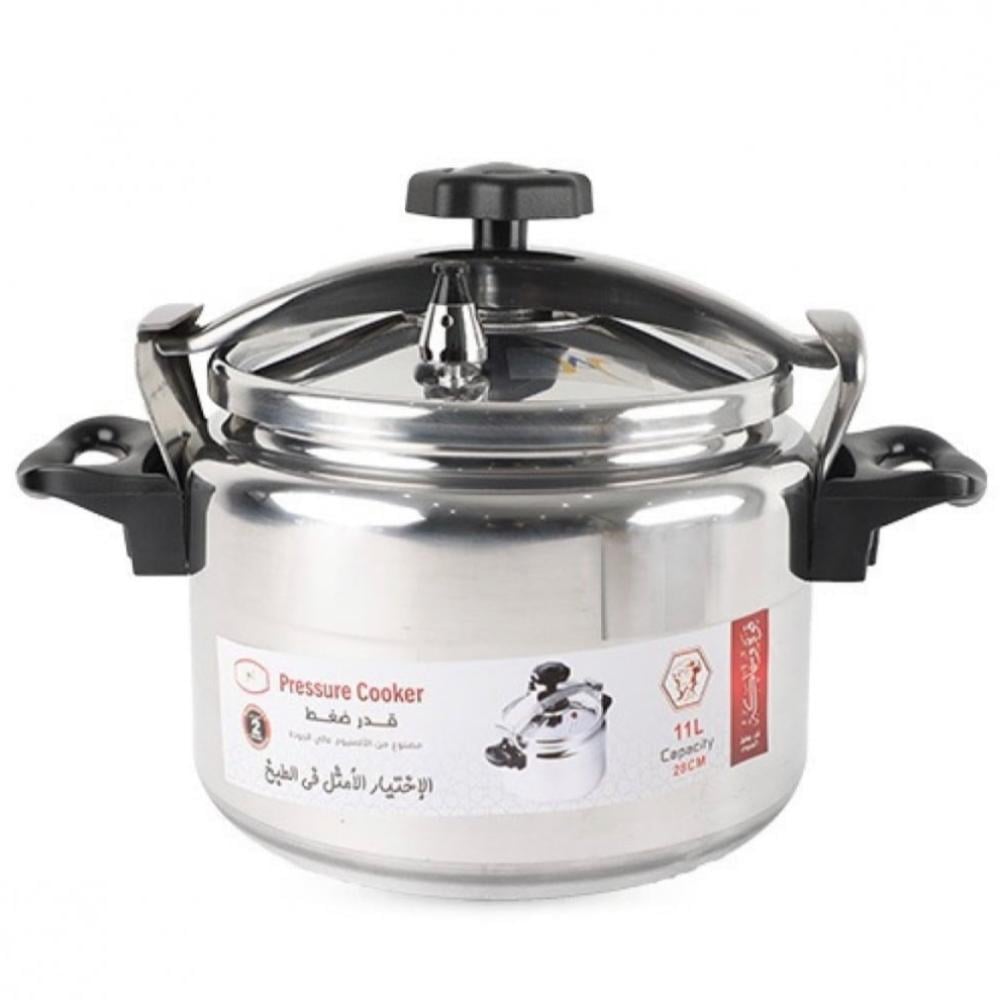 - التصميم:يتميز قدر الضغط بتصميم يجمع بين الأمان والفعالية، مع مقابض جانبية عازلة للحرارة وغطاء محكم الإغلاق مع صمام أمان.