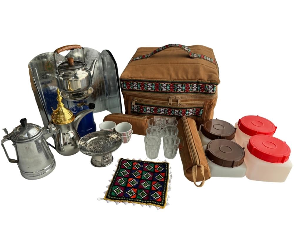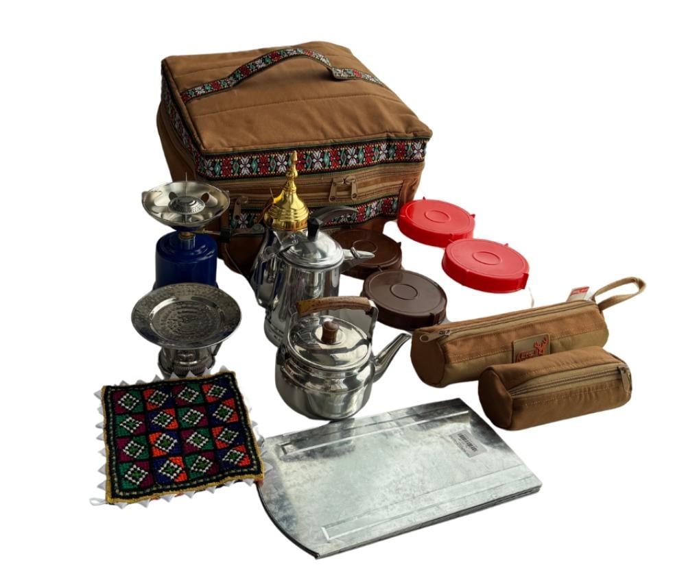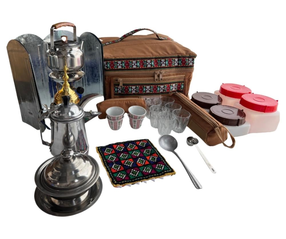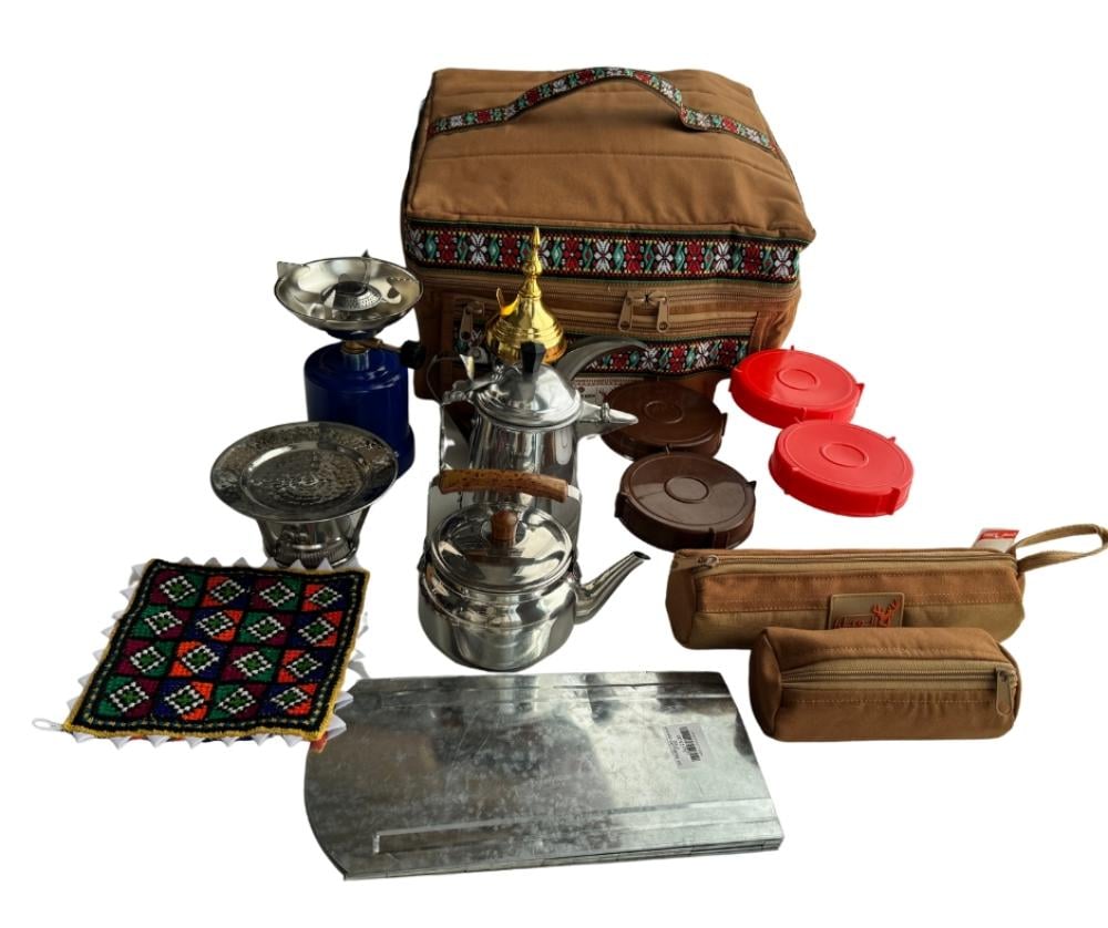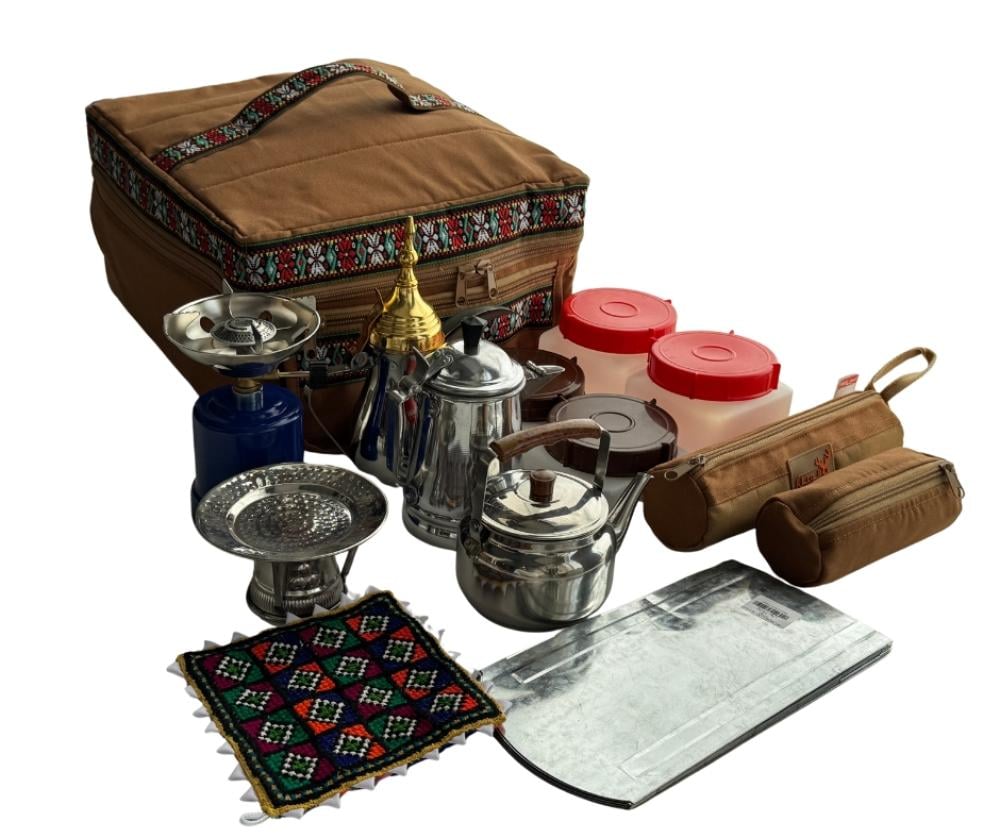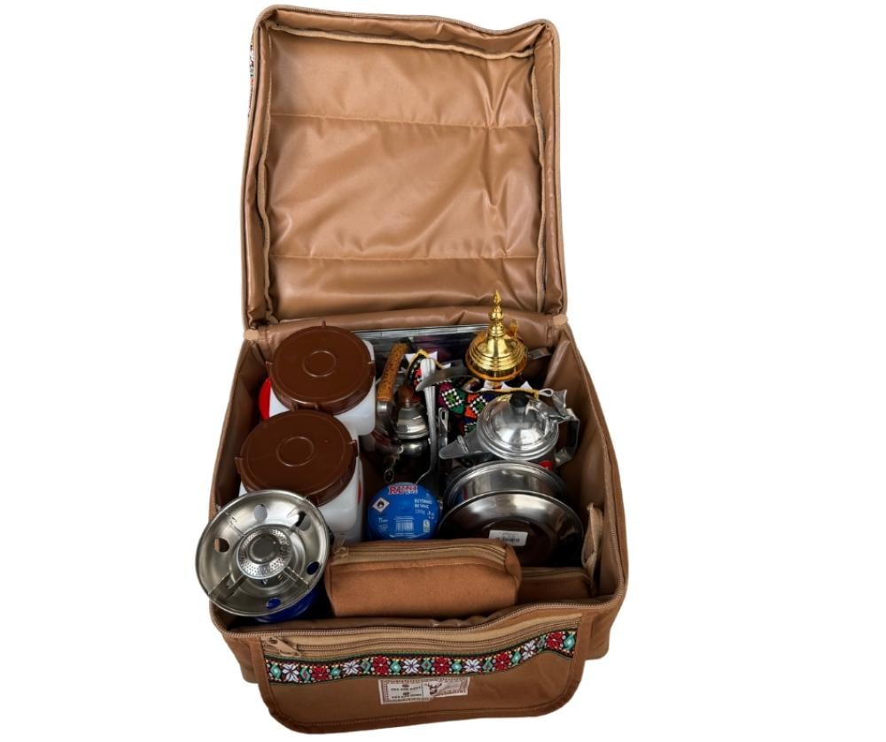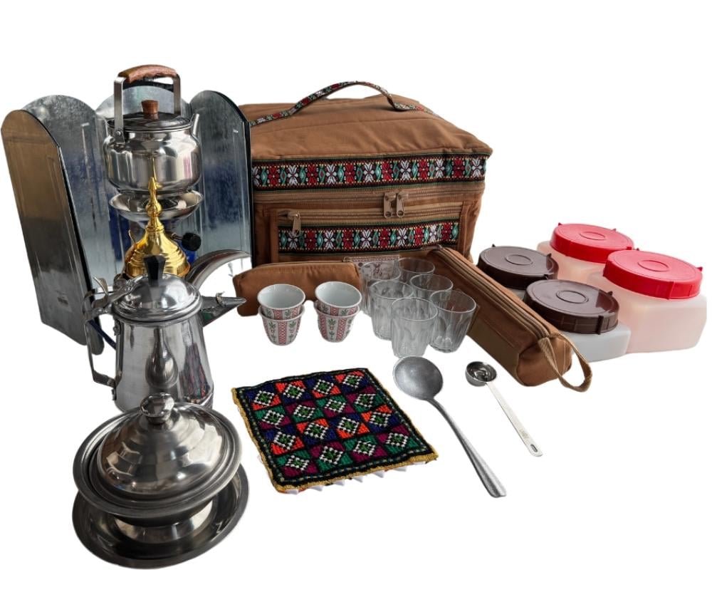 عزبة شاهي وقهوة فاخرة عزبة عالية الجودة. مختصرة لغرض الرحلات، وهي ذات مواصفات مثالية كاملة كل ما يلزم من أدوات الشاهي والقهوة وجرابات لحفظ أدوات رحلتك والتنقل بها بكل سهولة.